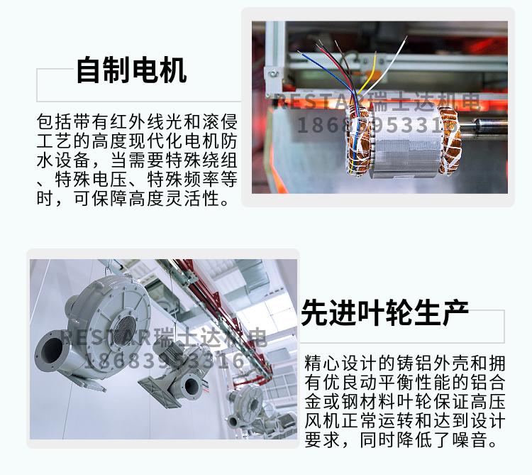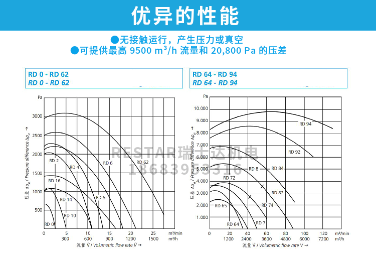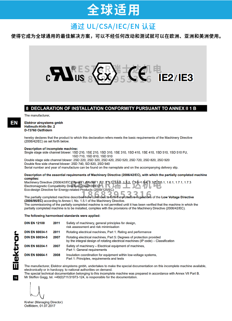 Elektror 侧流风机最高可以生成 750 mbar (75,000 Pa) 的差压和 1150 m³/h 的体积流量。Elektror 侧流风机的产品方案包含 单级系列(SD、1SD)、双级系列(2SD) 以及仅允许用变频器运行的侧流风机 (SD-FU/FUK)。为了提高效率,原则上还可以通过变频器对我们所有的侧流风机机进行调节。