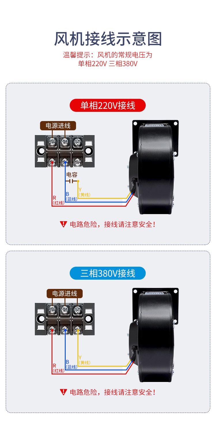 务必核对风机电机铭牌标注的额定电压(如220V/380V Dual Voltage字样)。部分进口设备支持双电压,需通过调整接线端子实现切换: